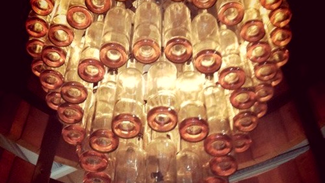 Dacă locuința îți permite (ca înălțime și ca asortare cu restul mobilierului), îți poti uimi prietenii veniți în vizită cu un candelabru realizat din sticle de vin. Dacă folosești sticle de culori diferite, impactul vizual va fi și mai mare.
