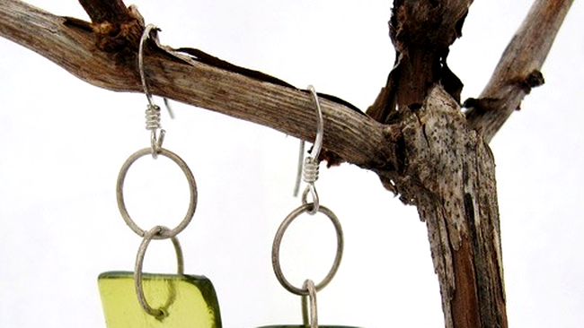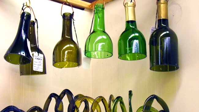 Amatorii de bricolaj pot folosi sticlele de vin drept materie primă pentru realizările lor. Pentru a le stârni creativitatea, iată o pereche de cercei realizați folosind o sticlă de vin.