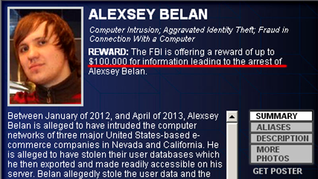 Cel mai important nume adăugat listei este cel al rusului Alexsey Belan, pentru care FBI-ul oferă 100.000 de dolari. Acesta a pătruns în serverele a trei companii americane (pe care însă FBI-ul nu le-a numit), de unde a furat în anii 2012 și 2013 date confidențiale.