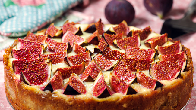 Se mixează 250g de brânză mascarpone cu 100g de frişcă lichidă, 5 linguri de miere, coaja rasă de la ½ lămâie, 2 ouă şi seminţele de la 1 păstaie de vanilie. Se taie în sferturi sau în felii 15-20 de smochine proaspete, spălate.