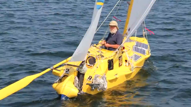 Septuagenarul (împlinește 74 de ani în 2013) a construit astfel, cea mai mică navă „transoceanică” de mărimea aproximativă a unei căzi de baie. Barca este echipată cu baterii cu gel, poate capta și înmagazina energia solară, dar și apa de ploaie. Rezervele de hrană sunt de aproximativ 400 de kilograme, constând mai ales din musli și sardine