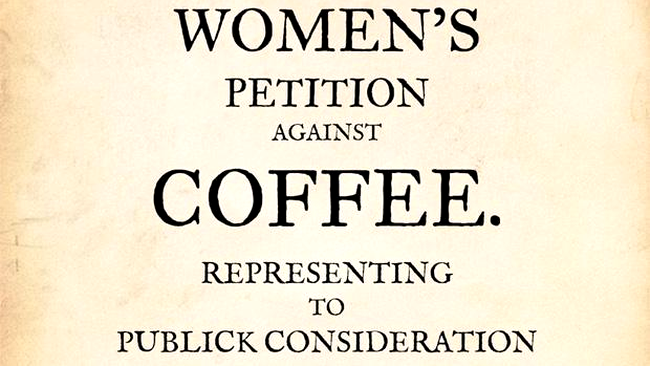 7. În 1674, „Petiția femeilor împotriva cafelei” arăta că aceasta îi transformă pe britanici în „corpuri fără nicio funcționalitate” și propunea interzicerea consumului cafelei de către bărbați până la vârsta de 60 de ani.