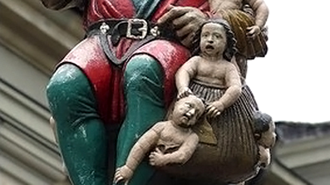 În Elvetia se află „sora” statuii din Oslo, reprezentând un bărbat care mănâncă bebeluși. Dacă treci rapid pe lângă acest monument din secolul 16, pare că este o fântână obișnuită…