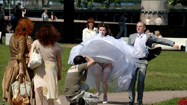 Nu se știe ce a fost în capul miresei care nu s-a asigurat că vântul nu-i va crea probleme, însă putem admira prezența de spirit și „iuțeala de mână” a fotografului, care a fotografiat tot ce a prins.