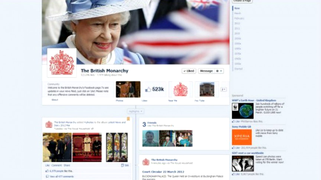 Deși Majestatea Sa nu are o pagină personală, există o pagină oficială a Monarhiei britanice, unde se postează destul de frecvent, de la repere istorice până la fotografii cu noul membru al familiei regale, micuțul Prinț George.