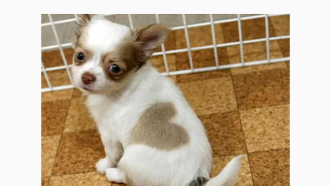 9) Un cățel din Japonia s-a născut, într-un pet-shop, cu un model clar în formă de inimă pe blana sa. Proprietara magazinului, Emiko Sakurada, a declarat că acum nu mai vrea să vândă patrupedul.