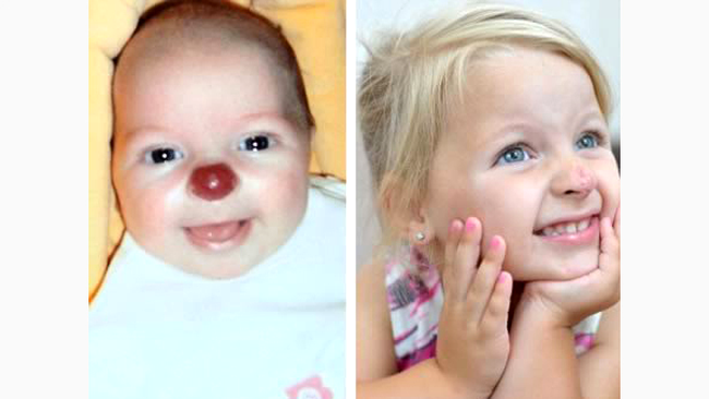 2) Connie Lloyd s-a născut cu o tumoră benignă, care a crescut până i-a acoperit nasul. Inițial i s-a spus că nu are nicio șansă de vindecare, dar ulterior chirurgii au făcut minuni! Acum, fetița are motive să zâmbească, pentru ca are un nas exact ca al mamei sale.