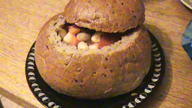 Alegi fasolea de seara și o pui la înmuiat în ap[ caldă. Dimineață arunci apa, speli fasolea în câteva ape, apoi o pui la fiert în apa cu sare. Fierbi, iar când boabele încep să se înmoaie, cureți ceapa, morcovul și prazul, le tăi cubulețe și le pui la călit în uleiul încins. Adaugi sare, oregano și busuioc și, când ceapa devine sticloasă, le iei de pe foc și le adaugi în ciorbă. Lași să fiarbă 10 minute, apoi adaugi și roșiile mărunțite, cu sosul din conservă și frunzele de dafin. Mai lași câteva minute și oprești focul, apoi adaugi leușteanul mărunțit. Poți să o servești în variantă clasică, alături de ardei iuți sau în pită. Pentru aceasta din urmă faci un capac pitei, îi scobești miezul, lăsând cam 1,5 cm de miez și dai la cuptor 10 minute, că să se întărească puțin coajă. Pui ciorba în pită doar în momentul servirii și acoperi cu „capacul” de coajă.