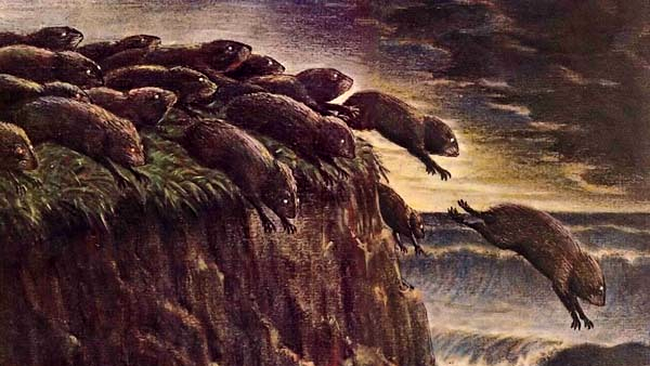 7.) Lemmingii nu se sinucid în masă. Acest lucru a fost popularizat în anii ’50 de filmul „Sălbăticia albă:, realizat de Disney.