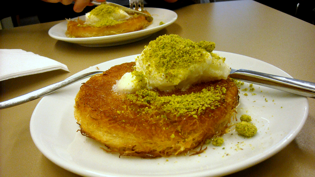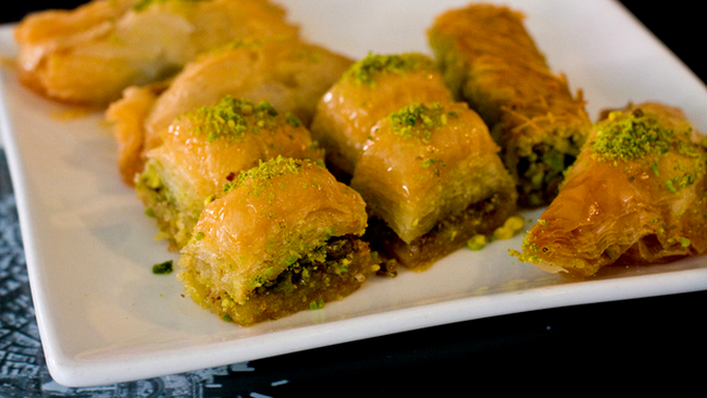 Ce este: un desert specific turcesc, obținut din aluat de plăcintă umplut cu nuci și fistic, zahăr și scorțișoară, însiropat după coacere cu sirop de miere.