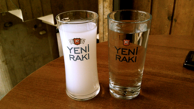 Ce este: Raki, o băutură alcoolică turcească, amestecată cu apă și gheață.