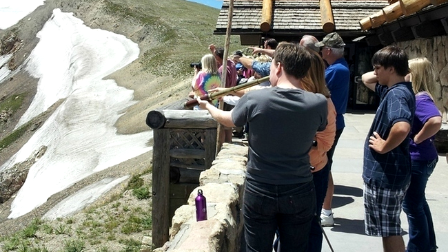 5. Un bărbat folosește un ochean clasic pentru a cerceta zona în care se află.