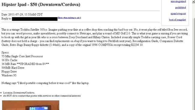 18. Un bărbat și-a listat pe Craigslist „iPad-ul hipsteresc”.