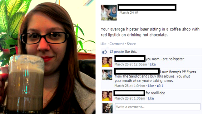 3. O fată își apără pe Facebook statutul de „hipsteriță”