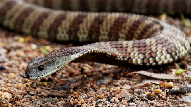 Trăiește în Australia, Indonezia și Papua Noua Guinee, reprezentând a doua cea mai veninoasă specie de șerpi din lume. Mușcătura unui șarpe brun poate cauza insuficiență renală, stop cardiac, paralizie, iar fără tratamentul corespunzător poate fi fatală. Acest șarpe tinde, însă, să se apare prin mușcături care nu sunt fatale, astfel că rata decesului în acest caz este de doar 15%.