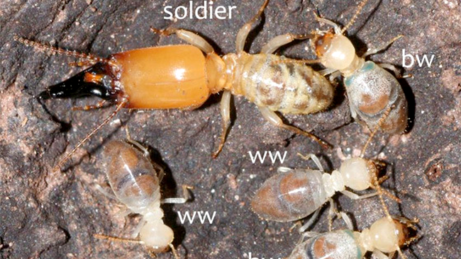 O specie de termite care trăiește în pădurile din Guiana Franceza reușește să supraviețuiască atacurilor unor prădători trimițănd în misiuni sinucigașe membrii cei mai vârstnici ai coloniei. Aceste insecte nu mai sunt considerate utile și au în dotare rezerve explozibile pe spate, care pe parcursul vieții lor sunt umplute cu cristale toxice produse de glande din abdomen. Când sunt amestecate cu secrețiile glandelor salivare, aceste cristale creează un lichid toxic care explodează lângă inamici, paralizându-i și omorând în același timp gazda lor.