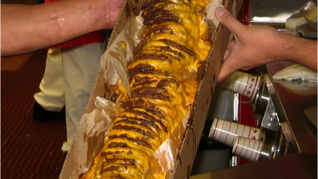 Cea mai mare provocare pentru In-N-Out a fost atunci când o gașcă de prieteni a comandat un 100X100. Tura de noapte a muncit non-stop, astfel că a doua zi de dimineață cei opt glumeți (flămânzi) și-au testat limitele stomacelor.