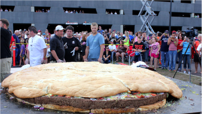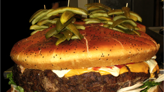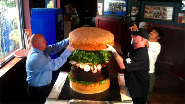 Chiar dacă de la o anumită mărime burgerul devine o grămadă enormă de carne și pâine, această limită nu a fost încă atinsă. Și asta pentru că realizatorii celui mai mare burger din lume, record deținut din septembrie 2012, au fost profesioniști în adevăratul sens al cuvântului: arată și frumos, este și gustos!
