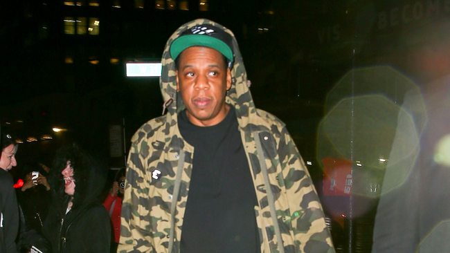 Jay-Z a ales o ţinută ceva mai cuminte, dar la fel de nepotrivită pentru petrecere. În adidaşi, cu pantaloni negri şi un pulover negru, dar şi cu o geacă cu imprimeu militar, artistul a ieşit la fel în evidenţă ca şi soţia lui.