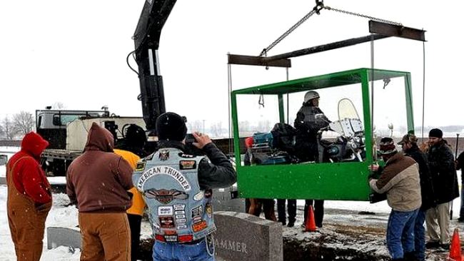 „Am mai avut cereri ciudate, însă nimic atât de extrem. Bătrânul a fost cel care a venit cu această cerere, să fie înmormântat pe motocicletă”, a declarat o angajată a firmei care a organizat funeraliile, citată de publicația locală Dayton Daily News.