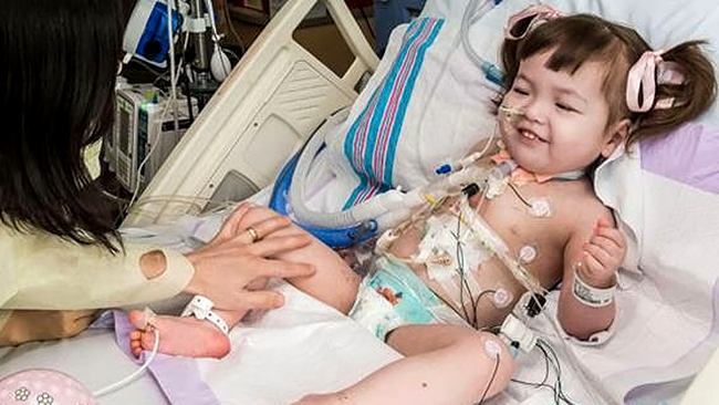 Hannah Warren, născută în 2010 în Coreea de Sud, nu a putut până acum să respire, să mănânce, să bea sau să înghită singură și avea doar 1% șanse de supraviețuire. De la naștere, până la operația de pe 9 aprilie de la Spitalul pentru Copii din Illinois care a reprezentat ultima tentativă a medicilor de a-i salva viața, micuța a stat într-un spital din Seoul, Coreea.