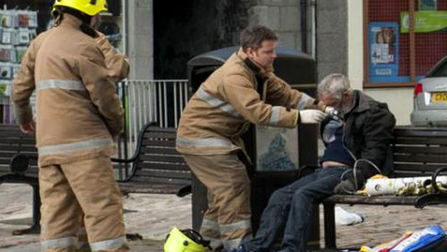 Bărbatul a rămas blocat în coșul de gunoi timp de 15 minute în Piața Castlegate, din orașul Aberdeen.