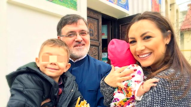 În imagine, alături de Andra şi cei mici se află şi duhovnicul familiei, căci artista îşi creşte copiii în cuvântul lui Dumnezeu.