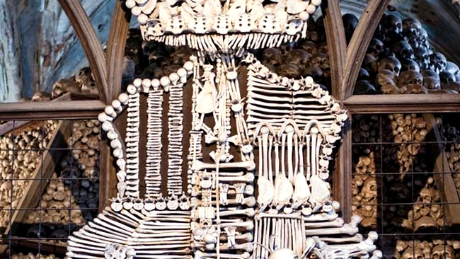 Și asta datorită osemintelor care decorează pereții și tavanele încăperilor.