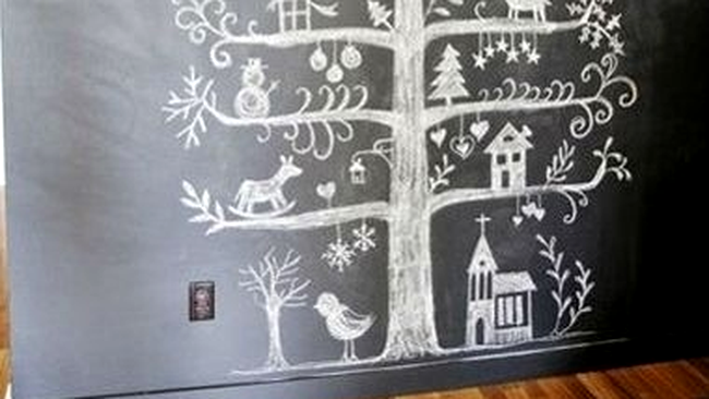 11. Poți avea un brad chiar și în sala de clasă! Aici, numai lipsa de imaginație poate limita frumusețea bradului desenat pe tablă.