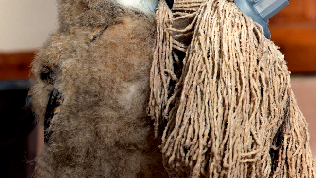 Această bufniță este în culmea fericirii când vede un mop în acțiune.