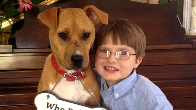 Xena, un mix de Staffordshire cu terrier, l-a făcut pe Jonny Hickey, din statul american Georgia, „cel mai fericit copil”, a declarat mama lui pentru Today.