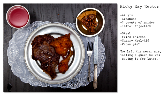 5. Ricky Ray Rector – friptură de porc și de pui, plăcintă de pecan (un fel de nuc) și suc de cireșe. De remarcat că nu a mâncat plăcinta, spunându-i unui gardian că o păstrează pentru „mai târziu”.