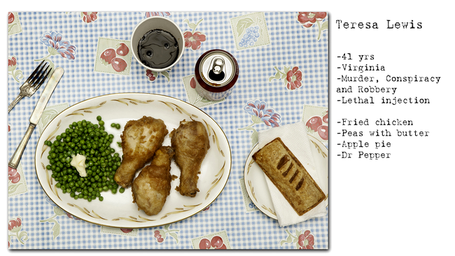 1. Teresa Lewis – pui prăjit, mazăre, placintă cu mere și Dr. Pepper