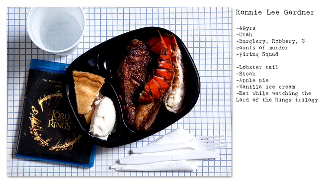 8. Ronnie Lee Gardner – coadă de homar, friptură de porc, plăcintă cu mere, înghețată de vanilie. El a mâncat ultima masă uitându-se la trilogia Lord of the Rings.