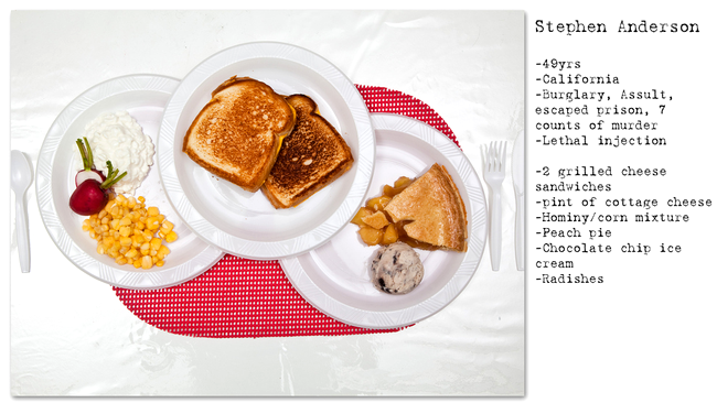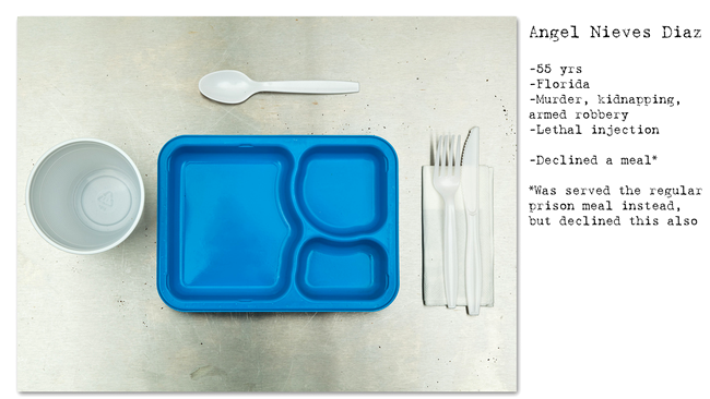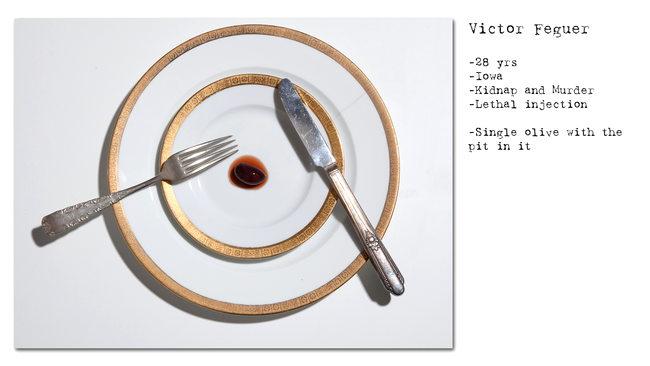 Revenind la timpurile noastre, fotograful Henry Hargreaves a prezentat în colecția sa No seconds câteva dintre ultimele mese ale unor condamnați americani la moarte.