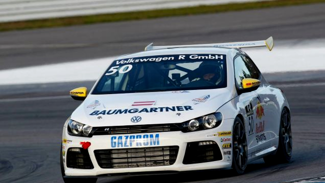 Din capsula sa supersonică, Felix, 44 de ani, a sărit şi la volanul lui Volkswagen XL1 pentru a participa la Volkswagen Scirocco R-Cup. Aceasta a avut doar 285 CP.