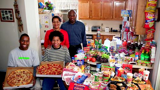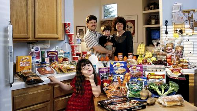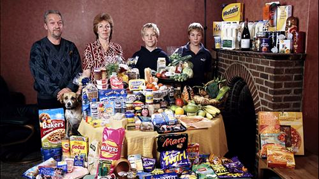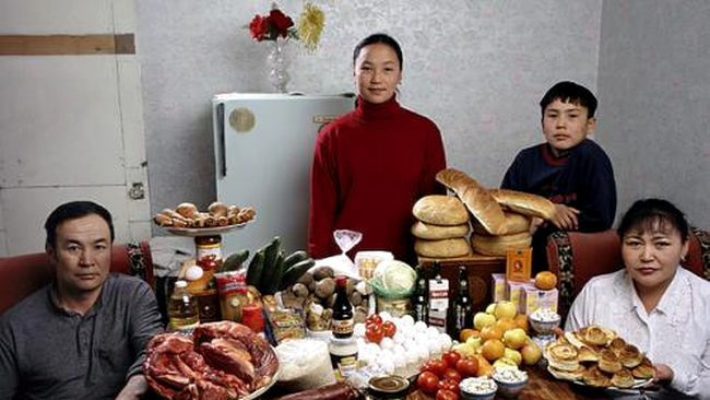 Asta au facut fotograful Peter Menzel si scriitorul Faith D’Aluisio pentru a se documenta pentru cartea lor Hungry Planet: What the World Eats.