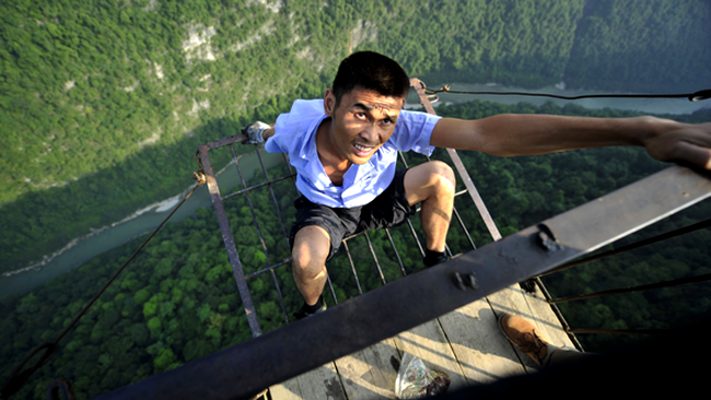 Acum 15 ani, cei 200 de locuitori ai satului izolat Yushan s-au bucurat când autoritățile le-au construit un „teleferic”, care scurta timpul în care ajungeau la cel mai apropiat sat de la câteva zile la „doar” câteva ore. Nu conta că telefericul era de fapt o cușcă metalică suspendată de două corzi metalice subțiri, acționată de un motor diesel. Traseul „telefericului” măsura 1.000 de metri iar cușca metalică traversa distanța între două vârfuri muntoase la peste 400 de metri deasupra văii.
