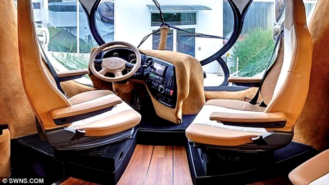 Luxoasa rulota are dotari pe masura: un living imens, un dormitor matrimonial, bai cu toaleta separata, o bucatarie functionala, un bar, un sistem de incalzire electronic prin podea controlat prin iPhone, finisaj interior din piele si alte accesorii scumpe.