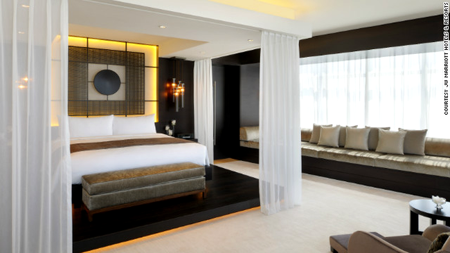 JW Marriott Marquis a intrat în Cartea Recordurilor drept cel mai înalt hotel din lume, având 72 de etaje și înălțimea de 355 de metri. Momentan, doar unul dintre cele două turnuri cu arhitectură futuristă își așteaptă oaspeții, urmând ca cel de-al doilea să fie finalizat în 2014.