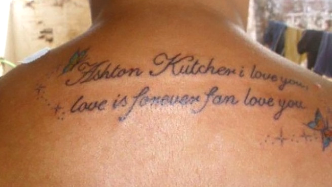 „Ashton Kutcher I love you. Love is forever” (n.r. „Ashton Kutcher te iubesc. Iubirea este pentru totdeauna”). Acesta este mesajul unui fan pentru actorul Ashton Kutcher.