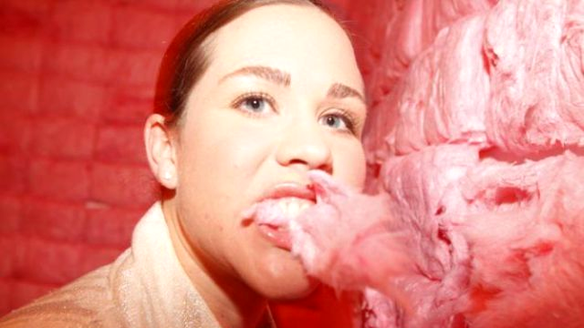 bucati de vata de zahar, in interiorul acesteia creandu-se