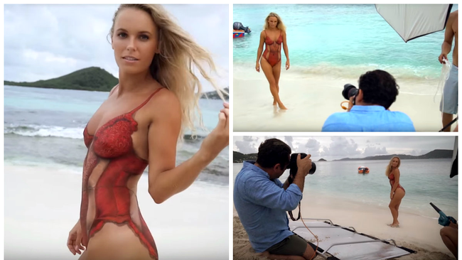 Frumoasa daneză a pozat într-un nou pictorial incendiar pentru revista americană Sports Illustrated. Wozniacki a pozată goală, având pe ea doar un costum pictat. „Costumul arată uimitor. Am stat în picioare 4-5 ore la început, înainte să pot sta jos, dar a meritat 100% şi sunt bucuroasă că am făcut-o. Mă simt dezbrăcată de tot, dar când mă uit în oglindă simt că am destule haine. Nu am mai făcut nimic de genul ăsta şi e ceva special. Mă uit cu emoţie cum se completează costumul de baie. Apoi, vom face câteva fotografii, ca să cinstim costumul cum se cuvine”, a declarat Caroline Wozniacki, în videoclipul care a urmat procesul de creare a desenului.