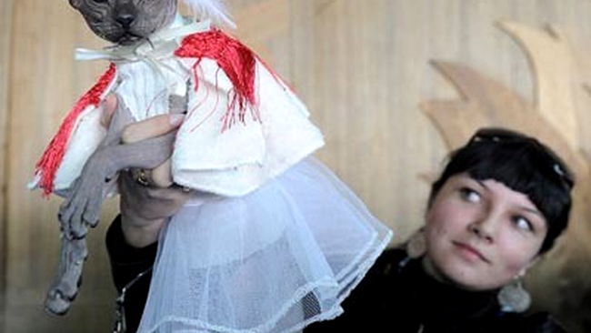 Această pisică din rasa Don Sphynx, aflată într-o dispoziție nu tocmai bună, a reușit să-i bage în sperieți pe vizitatorii expoziției de feline din Bishkek, Kârgâstan.