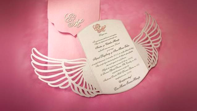 Cei doi ai ales nişte invitaţii care să se potrivească de minune cu tema botezului şi anume: lumea îngerilor. Astfel, invitaţiile vor fi în ton şi vor avea detalii în forma unei perechi de aripi.