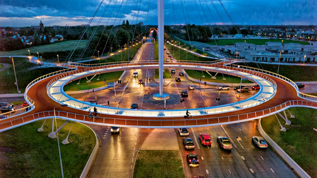 Iar dragostea olandezilor pentru bicicletă este întreținută și de autorități de zeci de ani. Localnicii din Eindhoven anunță primul pod circular suspendat destinat exclusiv bicicliștilor. Acesta, proiectat de o echipă de specialiști de la ipvdelft, face legătura dintre Veldhoven și Meerhoven și are 70 de metri înălțime la pilonul central, 24 de cabluri de oțel de susținere și în jur de 1.000 de tone de oțel. Podul îi ajută pe bicicliști să evite o mare intersecție.