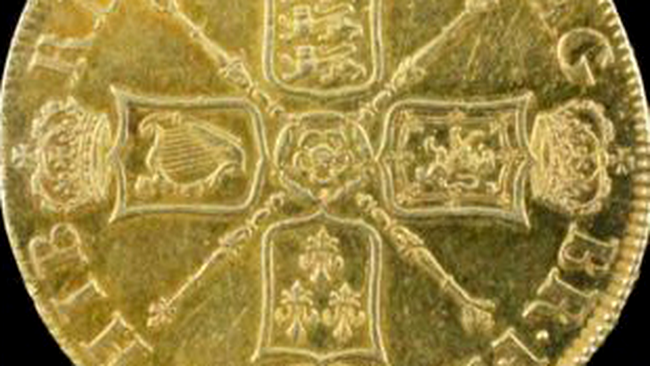 Banul este făcut dintr-o bucată de aur din comoara confiscată de britanici de pe o corabie spaniolă, în anul 1702.