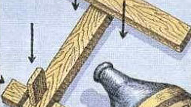 2. Folosește adeziv pentru a lipi între ele părțile componente după modelul următor. Tip: dacă vrei mai multe „motoare'”, poți mări aripile folosind lemn de esență moale sau furnir.