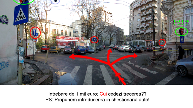 Pasul 4: La intersectia cu Dimitrie Gerota, ignori indicatorul „Cedeaza trecerea” – un pas care tie ti se pare logic, atat timp cat NU AI CUI sa cedezi trecerea (vezi poza 1)