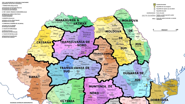 Romaniei, cu 6 macroregiuni care cuprind 14
